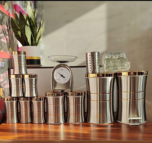 سرویس آشپزخانه ۲۹ پارچه کمر باریک استیل درب طلایی