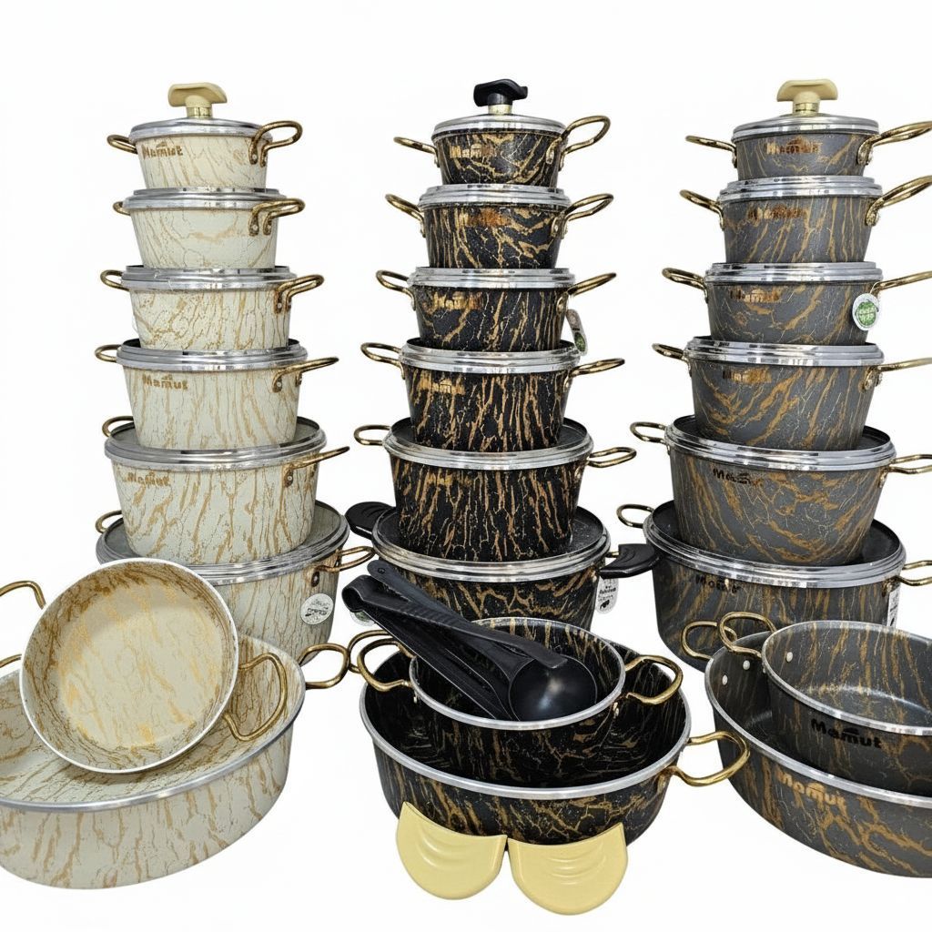سرویس قابلمه ۲۱ پارچه گرانیتی طرح ماربل ماموت