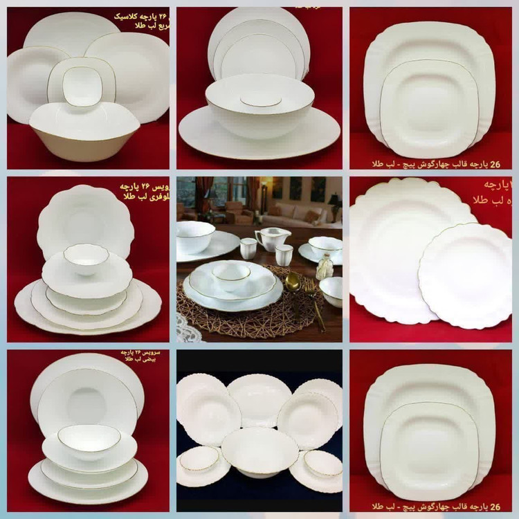 سرویسهای ۲۶ پارچه لب طلا در همه قالبها برند دینو با اشانتیون لب طلا شده فابریک کارخانه مقصود 😍😍😍.مربع .گرد.بیضی نیلوفری .کنگره .پیچ ..طلای کارخانه