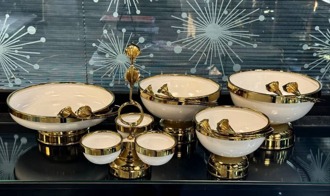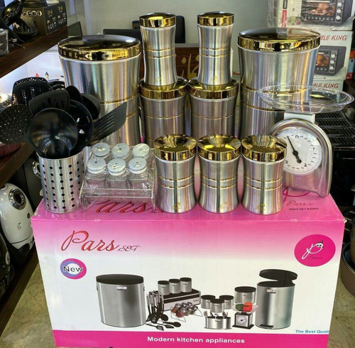 سرویس آشپزخانه مدل ۲۹ پارچه برند پارس ست سیلور کمر طلا درب طلایی