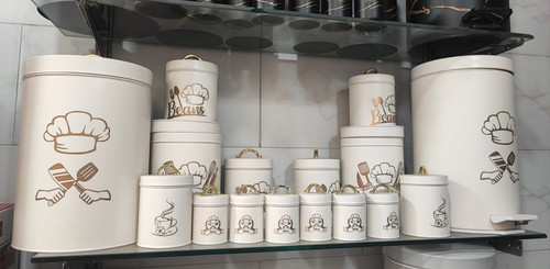 سرویس آشپزخانه ۱۵ پارچه کرم طوسی مدل لاکچری